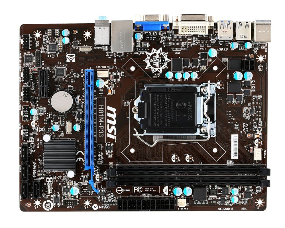 - One MSI H81M-P33 Motherboard micro ATX DDR3 LGA 1150 VGA DVI Intel H81 Au Seller